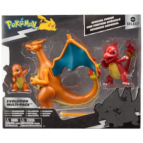 O conjunto Pokémon Select Evolution 3 Pack – Charmander, Charmeleon e Charizard reúne a linha evolutiva completa do Pokémon de tipo Fogo, em três figuras de tamanhos diferentes. O kit combina uma figura compacta de Charmander para exibição com figuras de Charmeleon e Charizard maiores e articuladas, adequadas para poses dinâmicas e cenas de batalha.