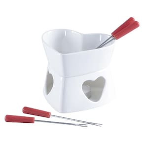 Em especial para você que aprecia uma boa comida e momentos de prazer com amigos e familiares foi feito esse conjunto de fondue com 7 peças. Com caçarola em porcelana ideal para preparo de fondue de queijo ou chocolate.