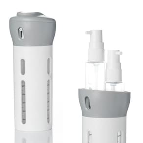 Características em destaque AVISO: Este produto pode conter peças pequenas, que representam um risco de asfixia. Supervisão de um adulto sugerida. 1. O novo conjunto de garrafas de viagem é mais durável, fácil de pulverizar e à prova de vazamentos. 2. O design inteligente evita vazamentos ao se mover e é adequado para todos os líquidos, loções e cremes. (A tampa interna da garrafa só pode ser aparaf, por favor, não a puxe com força.) 3. Cada garrafa > Nome do produto: Conjunto de garrafas de viagem 4 em 1 Material: ABS+PC Veja menos