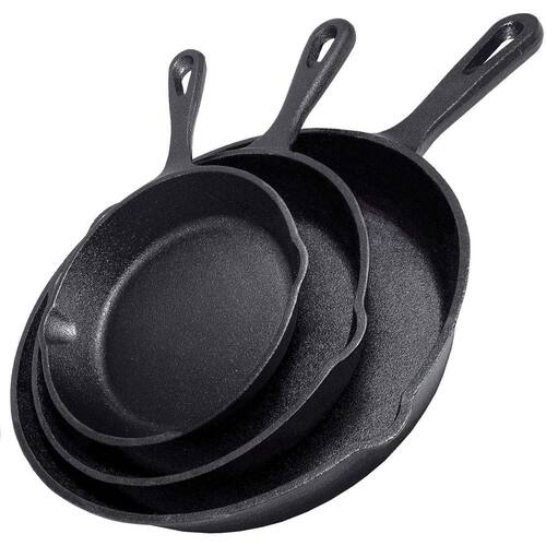 As frigideiras de ferro fundido são um item essencial atemporal para todas as cozinhas! O conjunto de 3 peças de frigideira de ferro fundido Simple Chef é melhor do que um conjunto de frigideiras de ferro fundido Lodge - pergunte aos nossos clientes! Com esta peça resistente e praticamente indestrutível, elas durarão anos, décadas e gerações! Nossas frigideiras são pré-temperadas de fábrica, então estão prontas para uso direto da caixa. Nossas panelas de ferro fundido são multifuncionais e adequadas para muitos métodos de cozimento diferentes. Use-os no fogão, no forno, sobre uma fogueira e até mesmo quando estiver cozinhando lentamente! São perfeitas para fritar, refogar, cozinhar, grelhar e muito mais. Além disso, nosso design tem retenção de calor superior e conduz o calor uniformemente, para que sua comida fique ótima sempre!