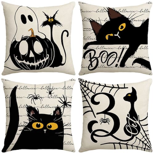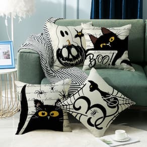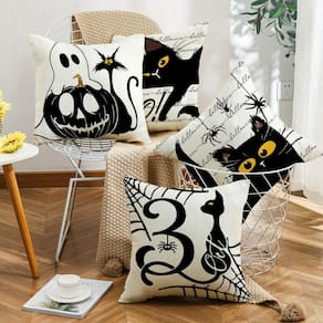 Material: ultramacio Peso: 600 g Tamanho: 45 × 45 cm Design divertido de Halloween: apresenta ilustrações divertidas com tema de Halloween com fantasmas, gatos pretos, abóboras e citações assustadoras como “Boo!” e “31 de outubro” Macias e confortáveis: feitas de tecido ultramacio, essas fronhas são aconchegantes e perfeitas para adicionar um toque festivo à decoração da sua casa nesta temporada de Halloween. Ideal para decoração de férias: essas fronhas decorativas são perfeitas para comemorar o Halloween, adicionando uma atmosfera assustadora e divertida à sua sala de estar, quarto ou escritório. Duráveis e fáceis de cuidar: feitas com materiais de alta qualidade, essas capas de almofada são laváveis à máquina e mantêm suas cores vibrantes mesmo após várias lavagens. Tamanho perfeito: medindo 45 x 45 cm, essas fronhas são ótimas para a maioria das almofadas padrão, aprimorando com estilo a decoração de sua casa com tema de Halloween.