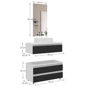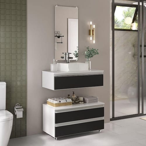 KIT BANHEIRO CRETA 80CM (INCLUI: 02 Armários + Cuba Sobrepor + Espelho)