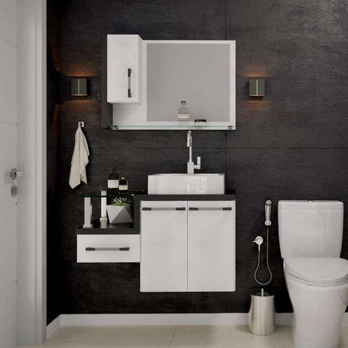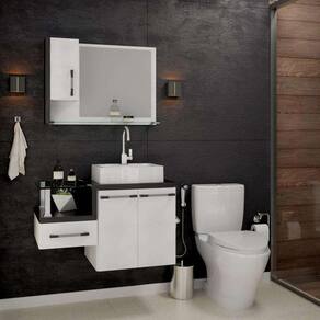 Que tal o Conjunto para Banheiro Wood?Seja para o lavabo ou para a suíte, o Conjunto Wood tem cantinhos ideais para apoiar tudo o que você precisa no dia a dia, desde itens cosméticos e de higiene pessoal até toalhas e porta-objetos - além disso, o espelho será um grande aliado para você dar uma conferida no look do dia e, claro, fazer sua rotina de cuidados diários. Com estrutura clássica e coloração tradicional, o design é um show à parte, já que oferece versatilidade para a decoração, te ajudando a deixar a casa do seu jeitinho. Ah, o conjunto já acompanha cuba, que o torna ainda mais completo, pois é só montar, posicionar bem no espaço e aproveitar toda essa praticidade. É ou não é perfeito para o seu lar-style?