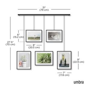 Umbra Conjunto de galeria de porta-retratos Exhibit, colagem de parede ajustável, exibe cinco fotos (duas de 10 x 15 cm e três de 12,7 x 18 cm), conjunto de 5, preto