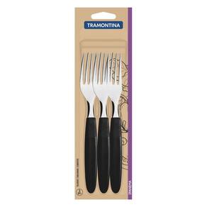 O Conjunto de Garfos de Mesa Tramontina Ipanema com Lâminas em Aço Inox e Cabos de Polipropileno Preto 3 Peças vai deixar sua cozinha ainda mais completa! Os garfos tem cabo em polipropileno, naquele pretinho básico que combina com todos os itens da sua cozinha e suas lâminas são produzidas em aço inox com espessura que lhes proporcionam maior resistência e durabilidade. A limpeza é muito fácil e eles podem ser lavados no lava-louças, sem riscos de comprometer suas características originais. O conjunto perfeito para completar sua cozinha! Orientações As lâminas de aço inox garantem maior resistência devido a espessura do aço e a estampagem das lâminas. Os cabos de polipropileno possuem maior resistência e durabilidade. Podem ir à máquina de lavar louças facilitando seu dia a dia. Observações Antes da primeira utilização, lave bem as peças e seque-as.Tenha cuidado ao manusear produtos cortantes e perfurantes e mantenha-os fora do alcance das crianças.Para maior durabilidade dos produtos recomenda-se secar bem antes de guardar, mesmo após lavagem em máquina. Para descarte dos produtos e embalagens siga as orientações de reciclagem vigentes. Características Gerais EAN13 7891112044296 DUN14 17891112044293 NCM 8215.99.10 Peso Líquido 0,0750 kg. Peso Bruto 0,0870 kg. Metragem 0,000265 m³. Dimensões Embalagem (Compr. X Larg. X Alt.) 13x 80x 255 mm. Cor 1 000000 Hexa