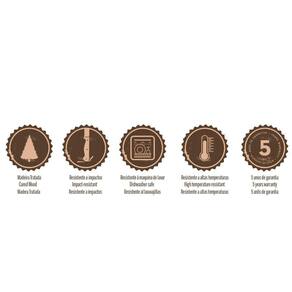As lâminas de aço inox contam com maior espessura e uma estampagem do aço que garante maior resistência, evitando deformações. Os cabos de madeira tratada Polywood são resistentes à impactos e alta temperaturas garantindo maior resistência e durabilidade. Rebites de alumínio. Podem ir à máquina de lavar louças facilitando seu dia a dia.