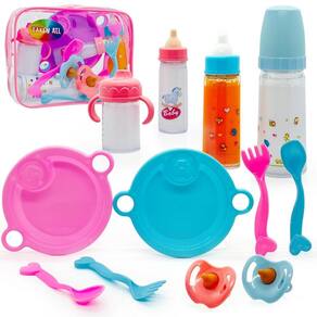 O pacote inclui o conjunto de garrafas mágicas: 4 garrafas de leite e suco que desaparecem. 2 chupetas de brinquedo de boneca. 2 tigelas, 2 colheres, 2 garfos. 1 bolsa de armazenamento. - Conjunto de garrafa mágica de boneca: inclui 4 garrafas de leite e suco que desaparecem, 2 chupetas de brinquedo, 2 tigelas, 2 colheres, 2 garfos. Conjunto total de 12 peças de acessórios de brinquedo de boneca. Embalado em uma bolsa de armazenamento. - Muito interessante, quando a boneca bebe suco e leite, a garrafa se inclina quando a garrafa reduzirá lentamente o líquido na garrafa, como a boneca na água potável real. Traga horas de diversão para as crianças. - O conjunto de mamadeiras de boneca é adequado para crianças com mais de 3 anos de idade, para jogos em família, alimentação de bonecas, encenações, etc. Também é muito conveniente para carregar quando você estiver viajando, o que pode fazer as crianças sentirem uma felicidade diferente na estrada! - Feito de material ABS, não é fácil de quebrar, pode ser utilizado por um longo tempo. Apenas para bonecas de brinquedo, não é adequado para bebês reais. - O conjunto de garrafas mágicas é um presente muito criativo, mas também para os amantes de jogos em casa, presente de festa muito doce, presente de Natal, presente de aniversário.