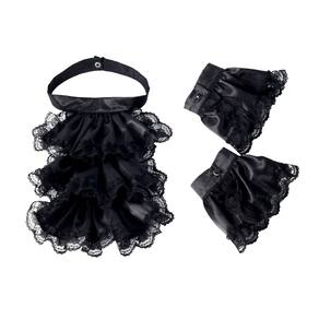 Conjunto de gola falsa de renda preta, coleiras removíveis com babados e punhos de renda combinando, camisa meio falsa, gola de blusa para cosplay feminino, traje gótico vitoriano, apresentação teatral e estilo retrô Material: renda Tamanho: 20 × 24 × 2 cm Peso: 100 g