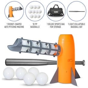 EQUIPAMENTO COMPLETO DE TREINAMENTO DE BEISEBOL O conjunto inclui 1 máquina de arremesso automático em forma de foguete, 1 taco de beisebol de plástico leve, 10 bolas PP e 1 bolsa esportiva de luxo para zenamento e transporte. Funciona com 4 pilhas AA não inclusas. PRATICAR EM QUALQUER LUGAR O taco de plástico oco, o lançador fácil de montar e desmontar e a bolsa esportiva permitem que você leve convenientemente nosso kit de equipamento de beisebol para qualquer lugar para treinamento fora do campo BOLAS DE BACKUP INCLUÍDAS Também jogamos 5 bolas PP extras para um total de 10 bolas PP Com isso, você e seu filho passarão mais tempo rebatendo em vez de pegar bolas. Ter bolas de reserva também significa que você não precisa se preocupar em perder uma ou duas bolas durante o jogo. PITCHES ESTÁVEIS DIVIRTA SE A máquina automática de arremessadores ajuda seu futuro jogador da liga principal a praticar sem um parceiro. Arremessos constantes todas as vezes, mesmo quando a bateria está se esgotando, a força de arremesso permanece praticamente inalterada. FEITO PARA JOVENS ATLETAS Certificado como para crianças de 5 anos ou mais. As bolas de beisebol PP e o bastão dobrável são ocos, portanto são muito mais s do que suas alternativas sólidas Marca: Não Informado