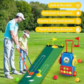 Conjunto de golfe VATOS para crianças, kit de 34 unidades de tacos de golfe infantis com tabuleiro de golfe de dupla face, carrinho de golfe, 4 tacos de golfe coloridos, 14 bolas, 2 buracos e bases de treino, tapete de golfe, conjunto de golfe infantil para meninos e meninas