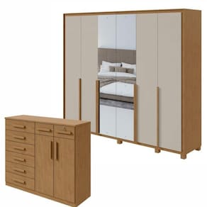 Conjunto Imperatore e Cômoda Toronto: Este conjunto combina o espaçoso Guarda Roupa Imperatore, com seis portas para armazenamento eficiente, com a elegante Cômoda Toronto. Juntos, proporcionam funcionalidade e estilo para o seu quarto, garantindo um ambiente organizado e sofisticado. Ideal para quem busca praticidade e elegância.