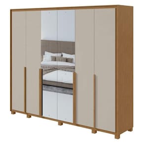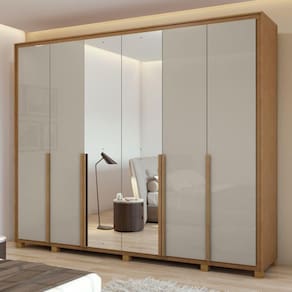 1x Guarda-roupa 6 Portas 6 Gavetas 100% Mdf Imperatore com Espelho e com Pés Amêndoa Clean/Off White Largura: 273,5 cm Altura: 247 cm Peso: 315,47 kg Profundidade: 65,4 cm Necessita Montagem: Sim