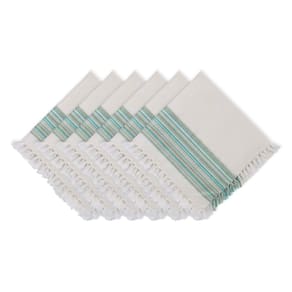DII Everyday Collection Tampo de mesa listrado com franjas, conjunto de guardanapos, 50 x 50, azul-petróleo