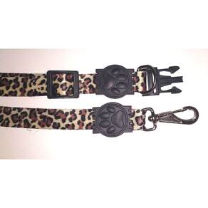 Conjunto de guia e coleiras confeccionadas em fita 25 mm de seda preta com estampa de onça; Presilha de plástico altamente resistentes com passadores de ajuste e borracha em formato de pata; cor: onça Tamanho único. Especificações Guia: 90 cm Coleira: 32 a 49 cm. O seu pet vai ficar todo estiloso e alegre com a coleira de seda. Marca: Não Informado