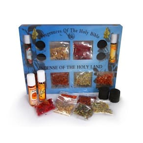 Conjunto de incenso Terra Santa: 7 fragrâncias Nard Rose, Jasmin, Musk, Mirrah, Amber, 2 Óleo de Unção e 4 Carvão Vegetal.