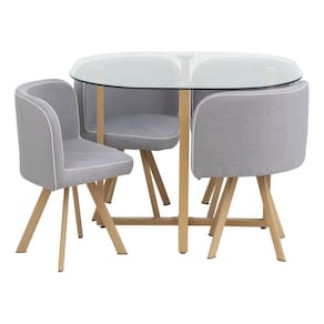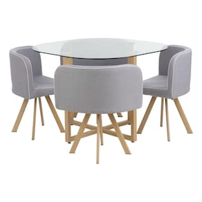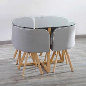 Resumo das caracteristicas e especificacoes: - Conjunto de jantar composto por mesa de 100x100 cm e quatro cadeiras - Cor cinza mate - Capacidade para quatro pessoas - Estrutura em metal e madeira - Superficie da mesa em vidro - Estofamento das cadeiras em poliester - Peso bruto de 47,4 kg - Requer montagem - Garantia de tres meses - Procedencia da China." Marca: Não Informado