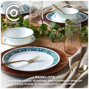 Traga estilo atemporal para a sua mesa com este versátil conjunto de jantar Corelle. Com 18 peças, incluindo seis pratos rasos de 26cm, seis pratos de pão de 16cm e seis tigelas de sopa/cereal de 532ml. Este conjunto em elegante verde esmeralda possui um toque vintage. Feito em vidro resistente de tripla camada Corelle, é leve, empilhável e resistente a quebras e chips. Pode ir à lava-louças, micro-ondas e forno. Leve e resistente, este conjunto evita lascas e rachaduras, é fácil de empilhar e ocupa metade do espaço de pratos cerâmicos. Baixa manutenção, higiênico e fácil de limpar. Adicione estilo e elegância à sua mesa com este conjunto clássico Corelle. Não utilizar em fogão, grelha ou micro-ondas com elemento de aquecimento.