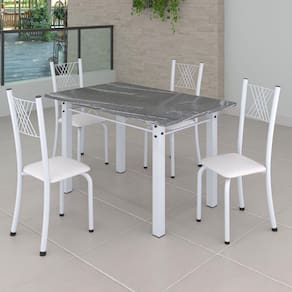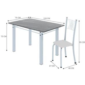 Quer deixar sua casa completa? Uma dica bacana de como transformar o seu lar, deixando-o mais receptivo e bonito? Então você precisa de móveis indispensáveis e deixar seu lar muito mais aconchegante, receptivo e sempre disponível para receber a visita de amigos, familiares e convidados. Você vai se apaixonar por este incrível Conjunto de Mesa com 4 Cadeiras Dany. Ideal para cozinha, ele é a melhor opção para completar o espaço. Aproveite!! Medida da Mesa (A x L x P): 75 cm x 75 cm x 120 cm Peso da Mesa: 55,8 kg Mesa suporta até: 8.0000 Acabamento da Cadeira/Banco: Pintura Texturizada Acabamento da Mesa: Pintura Texturizada Ambiente Principal: Cozinha Cadeira/Banco estofada: Somente Assento Estofado Cadeira/Banco suporta até: 120.0000 codigo_ean: 7909903360446 Complexidade da Montagem: Média: pode ser montado por mais de uma pessoa e/ou necessite de maior conhecimento para montagem Cor: Branco Liso/Branco Cor do Produto: Branco Liso/Branco Escala de Brilho: Semi-Brilho Espessura do Tampo: 15 mm Itens Inclusos: 1 Mesa, 4 Cadeiras, Kit Ferragens e Manual de Montagem Linha ou Coleção: Sara Manual de Especificação Técnica: https://product-hub-prd.madeiramadeira.com.br/860620/documents/7036e902-18bf-43c6-90bb-609afe3ba1d4parasaladejantarv02yescasa.pdf Manual de Montagem e Instalação: https://product-hub-prd.madeiramadeira.com.br/860620/documents/3d523024-c333-46dd-8368-6dbb818f2ecfaziosaladejantarv02yescasa.pdf Manutenção: Pano levemente umedecido e pano seco. Não utilizar produtos de limpeza abrasivos. Material da Base da Mesa: Aço Material da Estrutura da Cadeira: Aço Material do Tampo: Granito Medida da Base (A x L x P): 74,3 cm x 108 cm x 63,5 cm Medida da Cadeira/Banco (A x L x P): 95 cm x 40 cm x 37 cm Medida do Tampo (L x C x E): 75 cm x 120 cm x 1,5 cm Necessita Montagem: Sim Origem do Produto: Nacional Peso da Cadeira/Banco: 2,94 kg Possui Apoio Para os Pés: Não Quantidade de Cadeiras: 4 Quantidade de Lugares: 04 Recomendações de Uso, Manutenção e Limpeza: Pano levemente umedecido e pano seco. Não utilizar produtos de limpeza abrasivos. Sistema de Montagem: Parafusos