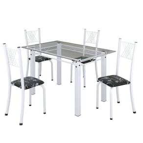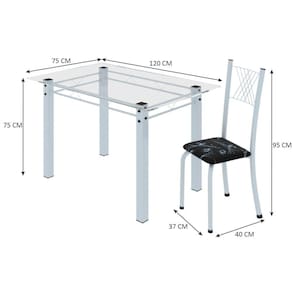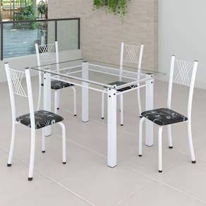 Quer deixar sua casa completa? Uma dica bacana de como transformar o seu lar, deixando-o mais receptivo e bonito? Então você precisa de móveis indispensáveis e deixar seu lar muito mais aconchegante, receptivo e sempre disponível para receber a visita de amigos, familiares e convidados. Você vai se apaixonar por este incrível Conjunto de Mesa com 4 Cadeiras Dany. Ideal para cozinha, ele é a melhor opção para completar o espaço. Aproveite!! Medida da Mesa (A x L x P): 75 cm x 75 cm x 120 cm Peso da Mesa: 53,76 kg Mesa suporta até: 8.0000 Acabamento da Cadeira/Banco: Pintura Texturizada Acabamento da Mesa: Pintura Texturizada Ambiente Principal: Cozinha Cadeira/Banco estofada: Somente Assento Estofado Cadeira/Banco suporta até: 120.0000 codigo_ean: 7909903360316 Complexidade da Montagem: Média: pode ser montado por mais de uma pessoa e/ou necessite de maior conhecimento para montagem Cor: Preto Floral/Branco Cor do Produto: Preto Floral/Branco Escala de Brilho: Semi-Brilho Espessura do Tampo: 6 mm Itens Inclusos: 1 Mesa, 4 Cadeiras, Kit Ferragens e Manual de Montagem Linha ou Coleção: Sara Manual de Especificação Técnica: https://product-hub-prd.madeiramadeira.com.br/860588/documents/8fc58679-db13-447e-b247-1964e44172d2parasaladejantarv02yescasa.pdf Manual de Montagem e Instalação: https://product-hub-prd.madeiramadeira.com.br/860588/documents/6840e5f6-0f94-4a4e-af2c-4890a3d6732folorsaladejantarv02yescasa.pdf Manutenção: Pano levemente umedecido e pano seco. Não utilizar produtos de limpeza abrasivos. Material da Base da Mesa: Aço Material da Estrutura da Cadeira: Aço Material do Tampo: Vidro Medida da Base (A x L x P): 74,3 cm x 108 cm x 63,5 cm Medida da Cadeira/Banco (A x L x P): 95 cm x 40 cm x 37 cm Medida do Tampo (L x C x E): 75 cm x 120 cm x 0,6 cm Necessita Montagem: Sim Origem do Produto: Nacional Peso da Cadeira/Banco: 2,94 kg Possui Apoio Para os Pés: Não Quantidade de Cadeiras: 4 Quantidade de Lugares: 04 Recomendações de Uso, Manutenção e Limpeza: Pano levemente umedecido e pano seco. Não utilizar produtos de limpeza abrasivos. Sistema de Montagem: Parafusos Vidro Temperado: Sim