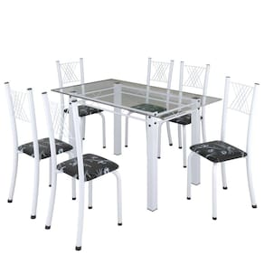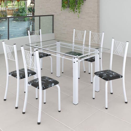 Quer deixar sua casa completa? Uma dica bacana de como transformar o seu lar, deixando-o mais receptivo e bonito? Então você precisa de móveis indispensáveis e deixar seu lar muito mais aconchegante, receptivo e sempre disponível para receber a visita de amigos, familiares e convidados. Você vai se apaixonar por este incrível Conjunto de Mesa com 6 Cadeiras Dany. Ideal para cozinha, ele é a melhor opção para completar o espaço. Aproveite!! Medida da Mesa (A x L x P): 75 cm x 75 cm x 140 cm Peso da Mesa: 64,36 kg Mesa suporta até: 8.0000 Acabamento da Cadeira/Banco: Pintura Texturizada Acabamento da Mesa: Pintura Texturizada Ambiente Principal: Cozinha Cadeira/Banco estofada: Somente Assento Estofado Cadeira/Banco suporta até: 120.0000 codigo_ean: 7909903360323 Complexidade da Montagem: Média: pode ser montado por mais de uma pessoa e/ou necessite de maior conhecimento para montagem Cor: Preto Floral/Branco Cor do Produto: Preto Floral/Branco Escala de Brilho: Semi-Brilho Espessura do Tampo: 6 mm Itens Inclusos: 1 Mesa, 6 Cadeiras, Kit Ferragens e Manual de Montagem Linha ou Coleção: Sara Manual de Especificação Técnica: https://product-hub-prd.madeiramadeira.com.br/860589/documents/182815d4-d6e1-4502-b946-c93fa982239aparasaladejantarv02yescasa.pdf Manual de Montagem e Instalação: https://product-hub-prd.madeiramadeira.com.br/860589/documents/9af71023-7081-4588-98d6-cb524cbd9c35olorsaladejantarv02yescasa.pdf Manutenção: Pano levemente umedecido e pano seco. Não utilizar produtos de limpeza abrasivos. Material da Base da Mesa: Aço Material da Estrutura da Cadeira: Aço Material do Tampo: Vidro Medida da Base (A x L x P): 74,3 cm x 108 cm x 63,5 cm Medida da Cadeira/Banco (A x L x P): 95 cm x 40 cm x 37 cm Medida do Tampo (L x C x E): 75 cm x 140 cm x 0,6 cm Necessita Montagem: Sim Origem do Produto: Nacional Peso da Cadeira/Banco: 2,94 kg Possui Apoio Para os Pés: Não Quantidade de Cadeiras: 6 Quantidade de Lugares: 06 Recomendações de Uso, Manutenção e Limpeza: Pano levemente umedecido e pano seco. Não utilizar produtos de limpeza abrasivos. Sistema de Montagem: Parafusos Vidro Temperado: Sim