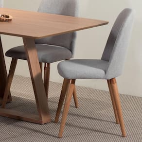 Especificações da Cadeira: Base Natural com Cobre e Tecido Linho Cinza. Produzido com pés em madeira maciça com acabamento em Verniz. Estrutura em aço com tratamento anti oxidação e ferrugem. Encosto e assento anatômico em MDF curvado. Confeccionada em espuma D23. Revestimento 100% Poliéster. Sapatas embutidas nas pontas dos pés. Largura: 46 cm. Altura: 88 cm. Profundidade: 56 cm. Peso do Produto: 5,22 kg. Peso Suportado: 120 Kg. Altura até o assento: 45 cm.