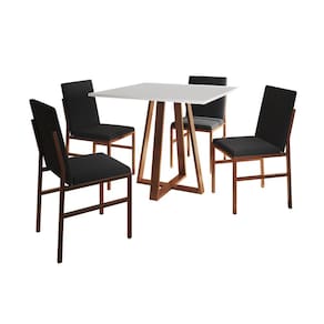 Conjunto de Jantar Mesa Mônaco 90cm Tampo Branco com 4 Cadeiras Pretas Base Cobre - Preto