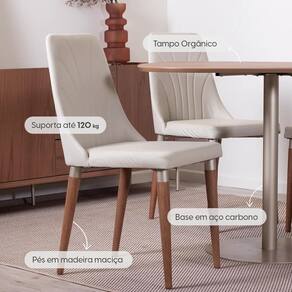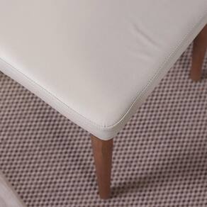 Cadeira de Madeira Maciça Estofada Lara - Natural c/ PU Off White - Champanhe.