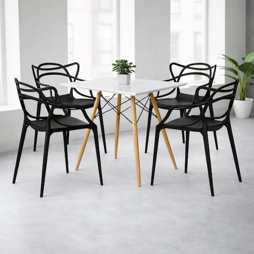 Mesa: Estrutura em metal com tampo em MDF/MDP. Cadeiras: Estrutura em metal com assento em polipropileno.Vendido e entregue por Decoreshop
