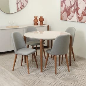 Especificações: Conjunto composto por 1 mesa de jantar e 4 cadeiras.