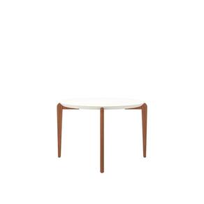 Mesa de Jantar Redonda c/ Vidro para 4 Lugares Donatella 115 cm - Off White Fosco c/ Natural