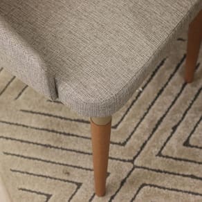 Pés usinados em madeira maciça com acabamento em pintura PU de alta resistência e sapatas de proteção.
