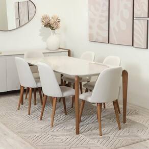 Especificações: Conjunto composto por 1 mesa de jantar e 6 cadeiras.