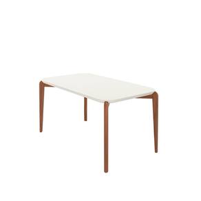 Mesa de Jantar Retangular c/ Vidro para 6 Lugares Donatella 160 cm - Off White Fosco c/ Natural
