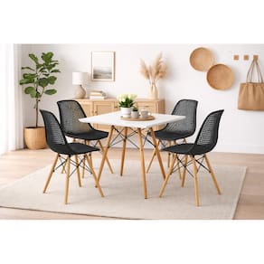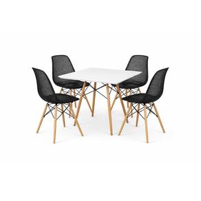 O design minimalista e atemporal se adapta perfeitamente a diversos estilos de decoração, enquanto as dimensões compactas tornam este conjunto ideal para espaços menores sem comprometer o conforto. As cadeiras foram projetadas para máximo conforto durante refeições prolongadas, com seu assento ergonômico e encosto ventilado. A mesa possui superfície lisa e durável, perfeita para uso diário, enquanto mantém uma aparência sofisticada que eleva o visual de qualquer ambiente. Cadeiras: Altura: 82cm Largura: 47cm Profundidade: 50cm Altura do Assento: 45cm Peso máximo suportado: 120kg Quantidade: 4 cadeiras inclusas Mesa: Altura: 74cm Tampo: 80x80cm Garantia de 90 dias contra defeitos de fábrica