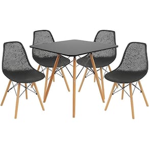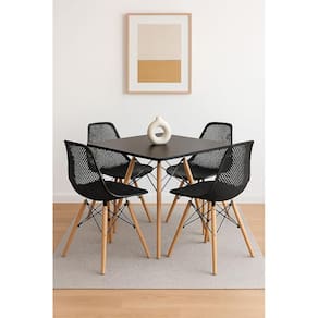 Tampo em material resistente, pés em madeira natural, estrutura das cadeiras em material resistente.Vendido e entregue por Decoreshop