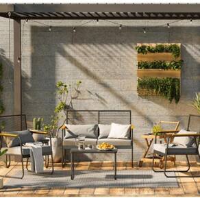 Conjunto de Jardim ideal para transformar seu espaco outdoor em um verdadeiro oasis de conforto e beleza. Composto por 4 pecas, incluindo 2 sofas de solteiro, 1 sofa duplo e 1 mesa, este conjunto e perfeito para acomodar ate 4 pessoas com todo o conforto. O modelo Granada, da renomada marca Just Home Collection, combina o design elegante do aco e vime com detalhes em poliester, polywood e vidro, garantindo durabilidade e resistencia. Com apoio de braco e uma belissima combinacao de cores em madeira e creme, o conjunto e a escolha perfeita para quem busca sofisticacao e praticidade. e com peso maximo suportado de 136 Kg, este conjunto e a opcao ideal para quem busca qualidade e estilo. Transforme seu jardim com elegancia e conforto Marca: Não Informado Ean: 8435677827988