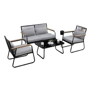 Conjunto De Jardim Aco E Vime 4 Pecas Sofa, Poltrona E Mesa