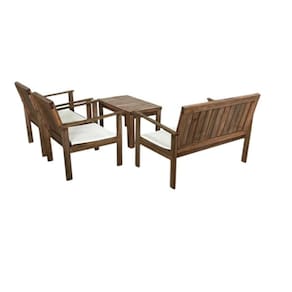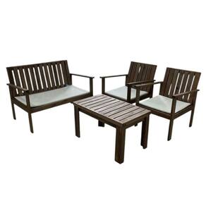 Leve mais aconchego e estilo para sua área externa com este lindo conjunto de jardim em madeira! Com acabamento em stain e estofados bege, ele é ideal para varandas, quintais, sacadas ou áreas gourmet, unindo praticidade, elegância e resistência.