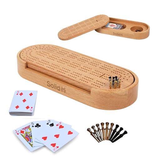 Solid H Conjunto de tabuleiro de cribbage: experimente jogos atemporais com nosso conjunto de jogos de tamanho de viagem de berço de madeira. Feito com perfeição, este conjunto de tabuleiro de cribage familiar reúne qualidade, estilo e entretenimento para horas de diversão clássica, seja você um jogador de cribbage experiente ou novo no jogo. Nosso conjunto de jogos de metal com pinos de berço é perfeito para todos os níveis de habilidade. Estes tabuleiros incluem tudo o que você precisa para começar a jogar direto da caixa. Você encontrará pinos de metal de alta qualidade, um baralho de cartas de baralho e instruções claras. O grande compartimento de armazenamento do nosso conjunto de placas de pinos garante que seus cartões e pinos sejam armazenados com segurança quando não estiverem em uso. Procurando um presente atencioso? Nosso jogo de tabuleiro de cribbage de madeira é a escolha ideal. Seja um aniversário, feriado ou ocasião especial, esses jogos de tabuleiro de madeira são um presente memorável e estimado que os destinatários apreciarão. Se você é um entusiasta de cribbage ou simplesmente ama jogos clássicos, este tabuleiro de berço de viagem com armazenamento de cartões é uma adição essencial à sua coleção. Desafie seus amigos e familiares para uma partida e crie memórias duradouras com nossas tábuas de berço exclusivas. --- Sobre nós: Solid H é uma pequena empresa familiar. Nossa família em Wisconsin ama essa tradição familiar e quer compartilhar nosso amor pelo berço com você e sua família. Este jogo de tabuleiro de luxo cribbage é um esforço para fazer exatamente isso. Esperamos que você ame nosso armazenamento de jogos de tabuleiro de cribbage tanto quanto nós. Obrigado por apoiar nossos negócios familiares! - Tabuleiro de cribbage de madeira de carvalho: eleve as noites de jogo com jogos de tabuleiro de madeira de cribbage. Estes jogos de viagem incluem tudo o que você precisa para horas de entretenimento, de cartas de baralho a pinos de metal, tudo em uma grande área de armazenamento. - Lindo design: com um design bonito, estes pinos de tabuleiro de berço adicionam um toque de sofisticação à sua experiência de jogo. Nossas tábuas de cribbage têm detalhes complexos e um acabamento suave para mostrar a beleza da madeira de carvalho real. - Jogo fácil de seguir: com instruções incluídas, jogadores de todos os níveis de habilidade podem desfrutar do jogo clássico com nosso tabuleiro de jogo de cribbage. A combinação de materiais, design e funcionalidade premium torna essas tábuas de cribbage um item essencial para entusiastas e iniciantes. - Artesanato de carvalho premium: nossos divertidos jogos de tabuleiro para adultos são habilmente feitos de madeira de carvalho de alta qualidade, garantindo durabilidade duradoura e uma estética elegante que resiste ao teste do tempo. Medindo 32,7 x 12,7 x 5 cm, este conjunto de viagem de tabuleiro de cribbage oferece amplo espaço de jogo enquanto permanece compacto e portátil. - Conjunto completo de jogo de tabuleiro de madeira: aproveite a conveniência de um conjunto de jogos abrangente com nosso conjunto de jogos de pinos de cribbage. Estes quadros de berço exclusivos incluem cartas de baralho, pinos de metal, instruções e uma área de armazenamento para cartas e pinos.