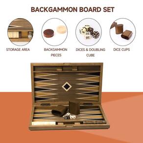 O conjunto de jogo de gamão dobrável de madeira inclui um tabuleiro de jogo de tabuleiro de gamão dobrável, um conjunto completo de 15 peças de jogo de gamão de madeira natural e 15 cores de café, dois copos grandes de dados de madeira, dois pares de dados, um cubo duplo e instruções de jogo para atender às suas necessidades de jogo. Existem três compartimentos para armazenar as peças e os dados do jogo de gamão, sem se preocupar em perder peças e dados. É perfeito para viagens, ambientes internos e externos, e diversão em família, noite de jogos, festa ou reunião de férias. - Material premium: nosso conjunto de jogos de tabuleiro de gamão dobrável de madeira apresenta o nível superior de artesanato embutido de folheado de madeira na superfície de jogo e superfície externa; lixar manualmente as superfícies e bordas da caixa do jogo, acabamento de pintura de grau de móveis; dobradiças de alongamento de bronze embutidas e ímãs fortes facilitam dobrar e travar a caixa do jogo - Tamanho: As dimensões abertas do tabuleiro de gamão premium são 52 x 42 x 2,8 cm, as dimensões fechadas são 42 x 26 x 5,5 cm e a dimensão da peça de gamão é de 2,8 cm - Conjunto completo: o conjunto de jogo de gamão de madeira inclui um tabuleiro de jogo de gamão dobrável, um conjunto completo de 15 peças de jogo de gamão branco leitoso e 15 cores de café, dois copos grandes de dados de madeira, dois pares de dados, um cubo duplo e instruções de jogo - Fácil de armazenar: você pode dobrar convenientemente o tabuleiro de jogo com todos os acessórios internos, existem três compartimentos internos para armazenar as peças do jogo de gamão e os dados, não precisa se preocupar em perder suas peças e dados do jogo, fácil de carregar e armazenar - Jogo divertido de gamão: o jogo de gamão pode estimular muito o interesse de todos, exercitando suas habilidades de pensamento e reação, adequado para adultos, iniciantes e jogadores avançados