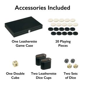 - Inclui dois pares de dados (um preto e um branco), dois copos de dados com pontos corridos decorativos, cubo duplo de gamão e conjunto de peças para jogar gamão