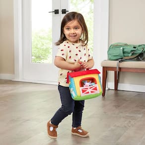 - Pressione os botões ou gire o trator para envolver dedos e ouvidos enquanto introduz sons de animais, frases de fazenda, músicas e melodias