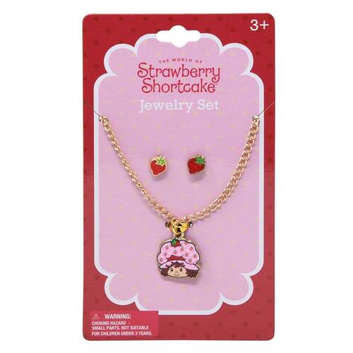 Conjunto de joias HER Strawberry Shortcake para crianças, colar com pingente Character com brincos de morango, maiores de 3 anos