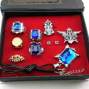 São apresentadas 8 peças de um lindo conjunto de colares Kuroshitsuji Black Bulter Sebastian Ring, brincos Contract Brooch, um acabamento requintado, a restauração definitiva da imagem de anime, com ótimo valor de coleção, também pode ser um presente para familiares e amigos, além de um ornamento perfeito para decoração de casa. É feito principalmente de liga prateada/banhada a ouro, adequada para maiores de 27 anos.