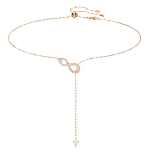 SWAROVSKI Coleção de joias Infinity Twist, pulseiras e colares, acabamento em tom de ródio e ouro rosa, cristais transparentes, Banhado a ouro rosa, Cristal - Simples e elegante: este colar com acabamento em tom de ouro rosa combina a precisão e a qualidade dos cristais Swarovski brilhantes com um design de colar atemporal, para um toque de glamour em todas as ocasiões - Minimalista e exclusivo: o colar Hyperbola Y apresenta um delicado sinal de infinito combinado com um elegante pingente de gota circular e um toque de pavé de cristal transparente em uma configuração com acabamento em tom de ouro rosa - Projetado para durar: as joias Swarovski manterão seu brilho ao longo do tempo quando práticas simples de cuidado forem observadas; remova antes de entrar em contato com água, loções ou perfumes para prolongar a vida útil de suas joias - Versátil e atraente: seja um destaque diário ou um acessório exclusivo para iniciar conversas, este colar com pingente Hyperbola é uma peça simples que complementará qualquer visual em qualquer ocasião - Itens entregues: 1 x pingente Swarovski Hyperbola Y para mulheres, corrente de metal com acabamento de ródio de 38 cm, cristais Swarovski transparentes, completo com caixa de colar Swarovski - Tamanho: 48,5/34/7,5 cm