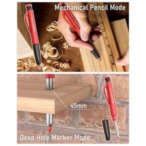 O pacote inclui: 2 x lápis de carpinteiro, 2 x alça de escrita removível, 12 x refis de grafite de grafite, 12 x refis de grafite colorido, 1 x ponteiro de grafite, 1 x nível de bolha, 1 x capa SOBRE Nicpro PENCILS Mecanismo de embreagem de segurança e não tóxico mantém o grafite firmemente no lugar Obtenha uma saída suave resistente a manchas modo de marcador de orifício profundo (NiExtended b Design) lápis de escrita molde (com alça de escrita) - Conjunto de lápis de construção valioso: você receberá 2 lápis de carpinteiro sólidos com 2 pegadas, 26 recargas de 2,8 mm, 1 apontador substituível, 1 mini nível de bolha, 1 caixa de armazenamento de plástico. A combinação completa de lápis de carpinteiro permite que você termine seu trabalho de forma mais rápida e fácil - Lapiseira 3 em 1 com pega: este lápis de construção vem com uma alça ergonômica que pode ser retirada a qualquer momento. Garante que você escreva muito mais facilmente do que com qualquer outro lápis de carpintaria, você pode mudar do modo de desenho para o modo de marcador de furo profundo em um segundo! Com este lápis de construção 3 em 1, você sempre terá o lápis certo à mão - Lápis marcador de furo profundo com apontador: os lápis de construção de orifício profundo adotam um design de ponta alongada de 45 mm, o que é mais conveniente para marcar no pequeno orifício ou em outras áreas apertadas. Além disso, os lápis para marcenaria vêm com um apontador embutido parafusado na parte superior de cada lápis de trabalho para fornecer boa precisão em todos os momentos - Grafite sólido mais forte: este lápis de trabalho é combinado com um grafite de 2,8 mm de espessura, que é muito mais espesso e mais forte durante o processo de desenho do trabalho de construção, não quebra facilmente - Portabilidade: nossas ferramentas de carpinteiro serão embaladas em uma caixa de plástico requintada. Estrutura compacta e leve, pode ser facilmente transportada em uma bolsa. É conveniente para carpinteiros, marcenaria ao ar livre ou qualquer pessoa que precise de um instrumento de marcação confiável em movimento