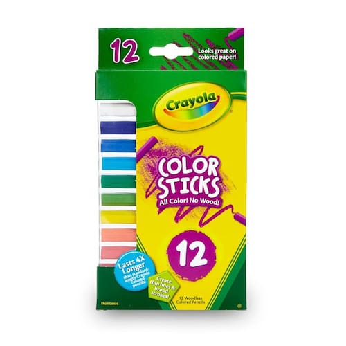 Crayola Palitos de cor (12 unidades), conjunto de lápis de cor sem madeira para crianças, materiais de arte para sala de aula, linhas finas e traços largos, não tóxicos - Cores vibrantes: os bastões de cor Crayola apresentam 12 lápis de cor ousados e brilhantes (as cores podem variar) para dar vida à sua obra de arte. - Design sem madeira: ao contrário dos lápis de cor tradicionais, estes palitos não têm revestimento de madeira, o que os torna mais duradouros e mais fáceis de afiar. - Aplicação suave: a fórmula à base de cera oferece uma aplicação suave e uniforme, perfeita para colorir, desenhar e detalhar. - Design ergonômico: a forma hexagonal dos bastões é projetada para uma aderência confortável e para evitar que você role para fora das superfícies. - Uso versátil: estes bastões coloridos são ótimos para vários projetos de arte, incluindo desenho, coloração e mistura. - Forte e durável: o design resistente dos bastões coloridos garante que eles não quebrem facilmente, tornando-os perfeitos para uso por crianças e adultos. - Não tóxicos: estes bastões coloridos são seguros e não tóxicos, o que os torna ideais para crianças e adultos de todas as idades.