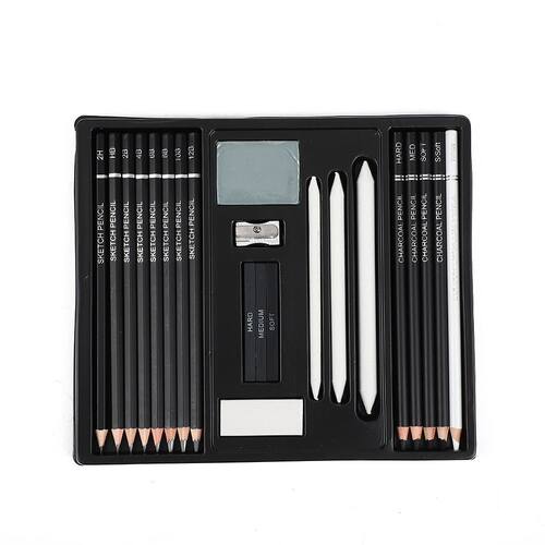 Material: madeira Tamanho: 19,5 cm × 22 cm × 1,8 cm Peso: 210 g Kit de desenho completo: este conjunto de 22 peças inclui lápis de grafite, lápis de carvão, ferramentas de mistura, borracha e apontador, fornecendo tudo o que você precisa para começar ou aprimorar seus esboços e desenhos. Lápis versáteis para todas as técnicas: com vários tipos de lápis, do duro ao macio, este conjunto é perfeito para linhas detalhadas, sombreamento e mistura suave, dando aos artistas a flexibilidade de criar diversos estilos de arte. Ideal para artistas e estudantes: seja você um aspirante a artista ou um profissional, este conjunto abrangente se adapta a todos os níveis de habilidade e é perfeito para uso na sala de aula, em casa ou no estúdio. Ferramentas de desenho de alta qualidade: os lápis de grafite e carvão de alta qualidade deste conjunto garantem linhas suaves e precisas, facilitando a obtenção de sombreamentos, realces e gradientes realistas. Armazenamento portátil e conveniente: todas as ferramentas vêm bem organizadas em um estojo durável, facilitando o armazenamento e o transporte de seus suprimentos, para que você possa esboçar e desenhar em qualquer lugar, a qualquer hora.