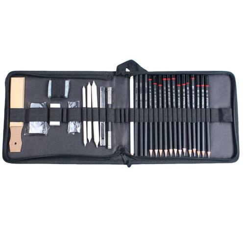 Material: madeira Tamanho: 21,5 cm × 20 cm × 3 cm Peso: 600 g Kit de desenho completo: este conjunto de desenho de 35 peças inclui uma variedade de lápis de grafite (4H a 8B), lápis de carvão, tocos de mistura, borrachas amassadas e de vinil, apontador e um estojo de armazenamento conveniente. Perfeito para todos os níveis de habilidade: seja você um artista iniciante ou experiente, este conjunto tem as ferramentas essenciais para esboçar, sombrear e mesclar, tornando-o ideal tanto para a prática quanto para o trabalho profissional. Lápis de alta qualidade: os lápis de grafite incluídos oferecem linhas suaves e consistentes para detalhes precisos e tons variados, enquanto os lápis de carvão adicionam profundidade e riqueza à sua arte. Ferramentas de mistura e sombreamento: os tocos e borrachas de mistura permitem transições suaves, sombreamento realista e detalhes finos, ajudando você a obter esboços de nível profissional. Portátil e organizado: o conjunto vem em uma maleta de transporte durável e organizada, facilitando o armazenamento e o transporte de suas ferramentas para aulas de arte, workshops ou projetos em qualquer lugar.