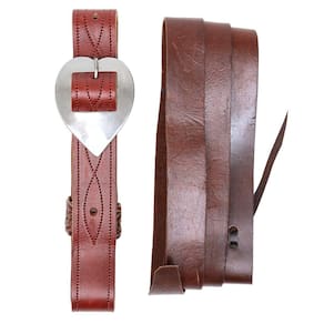 Um Conjunto Látego e Contra Látego da marca A Pantaneira fabricado em couro na cor Havana. O contra látego possui couro duplado com costuras reforçadas, fivela de aço inox modelo Coração e passador trançado em couro meio cortume e o látego é fixado por tento de couro.